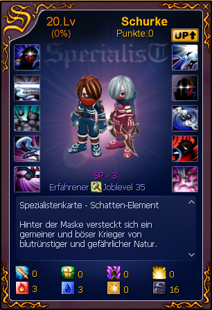 Der Schurke ist die zweite Spezialisten-Karte vom Bogenschützen. Er fühlt sich in den kalten und finsteren Welten der Schatten zu Hause, welche auch sein Element vertreten.