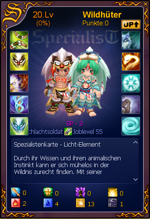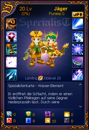 Der Jäger ist die erste Spezialisten-Karte des Bogenschützen. Er zeichnet sich durch eine höhere Angriffsgeschwindigkeit und einen stärkeren Angriff aus. Sein Element ist das Wasser, welches sich auch in seinen Skills widerspiegelt.