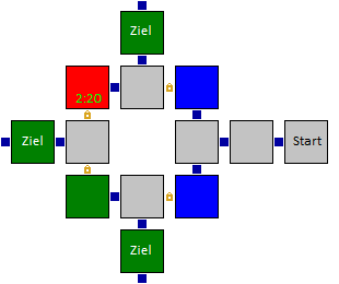 In jedem dieser befindet sich ein Blocktaster, alle müssen betätigt werden bevor man den TS durch einen der Ausgänge verlässt.