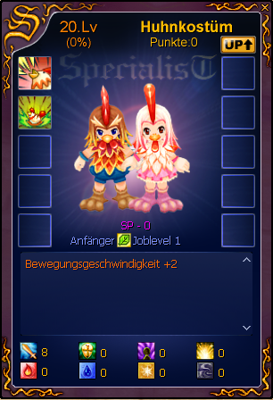 Die Chicken Spezialisten-Karte kann man mit ab Job lvl 1 und einem Ruf ab 0 tragen.